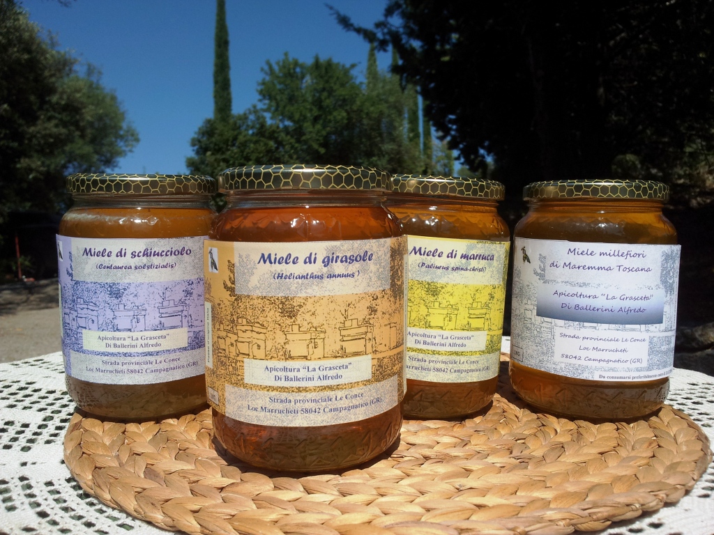 Quest'anno le mie poche famiglie in produzione si sono sbizzarrite, complici una serie di eventi favorevoli come le piogge di giugno e luglio ed il clima favorevole, le api sono riuscite a fare buone quantità di millefiori poi marruce passando dal girasole fino al fiordaliso giallo, nelle nostre zone chiamato schiucciolo.